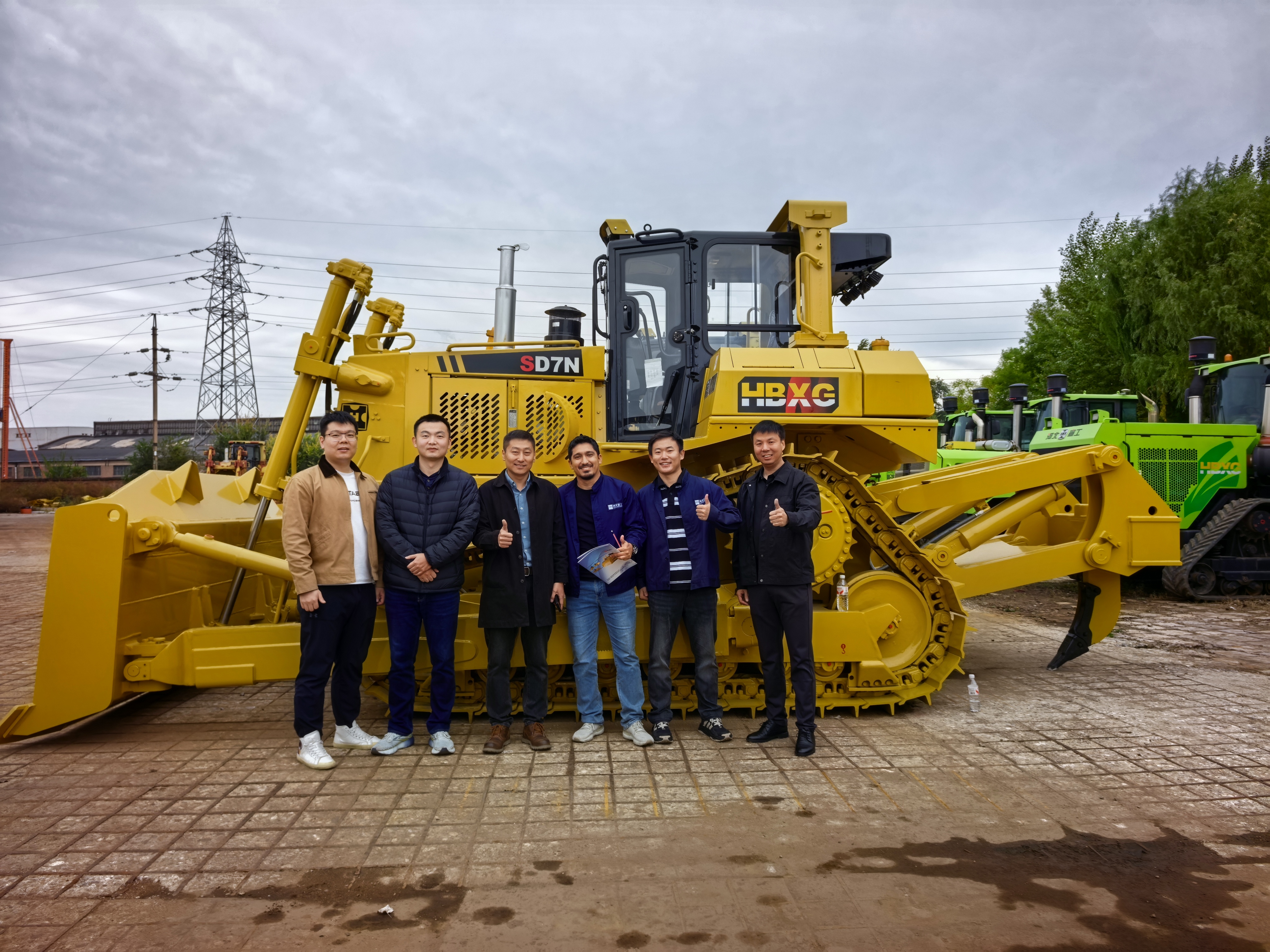 近日,中工工程机械成套有限公司(以下简称中工成套)跨境电商部接到厄瓜多尔客户的推土机采购需求,业务人员迅速响应,通过多轮线上交流,精准把握客户对砂矿作业设备耐磨损性、重载稳定性的需求,以及当地雨季湿地对履带防滑、接地比、动力输出的高要求。经技术评估,业务人员向客户重点推荐了河北宣工高驱型推土机,其湿地优化履带与强化驱动系统充分适配砂矿场景,并带领客户参观河北宣工工厂,协助客户与技术人员深入交流,基本确定湿地版定制方案,取得客户采购意向。